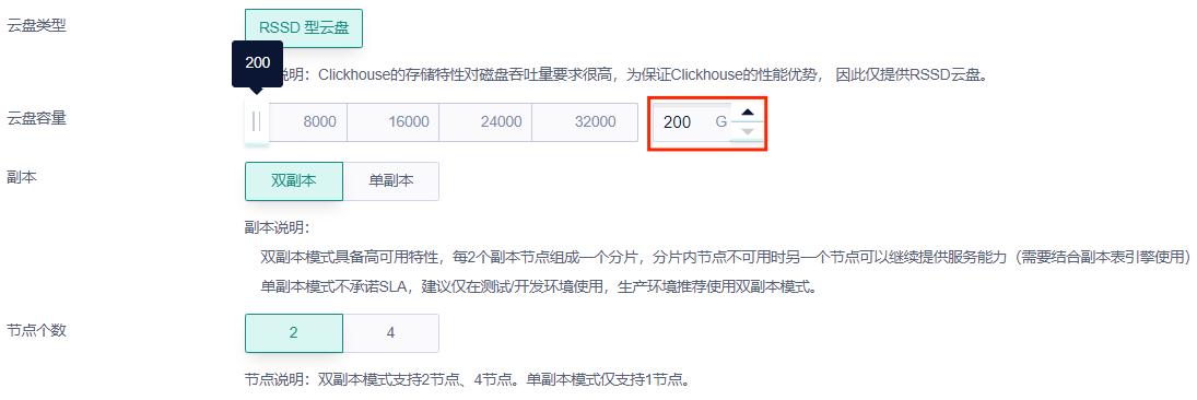 #### 2)配置中,选择版本22.3LTS,云盘容量选择200G,节点个数选择2个节点。子网设成"DefaultNetwork",记住DB名称,端口,管理员用户名,设置管理员密码。选择按时付费,立即购买。