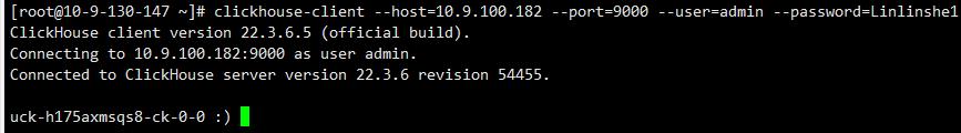 clickhouse-client --host=<下图任一节点IP地址> --port=9000 --user=admin --password=<创建集群时设置的密码>