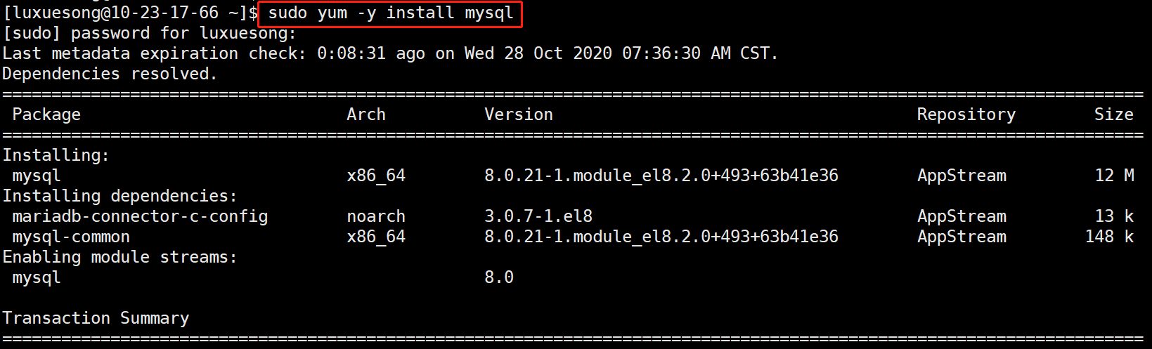sudo yum -y install mysql