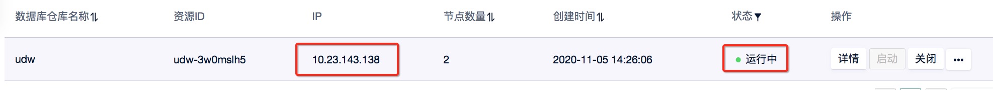 3)支付之后,数仓创建时间从几分钟到十几分钟不等,等状态显示“运行中”,则创建完毕。记住数仓的IP地址。