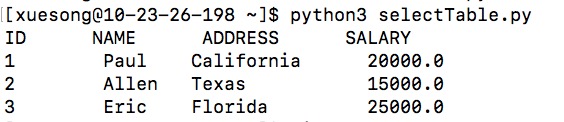 **************作业3:请将运行selectTable.py的命令和输出结果截图,并插入实验报告***************