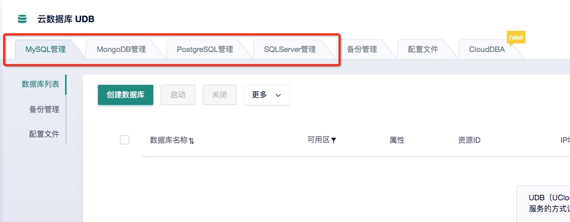 云数据库UDB、云主机uhost、基础网络unet
