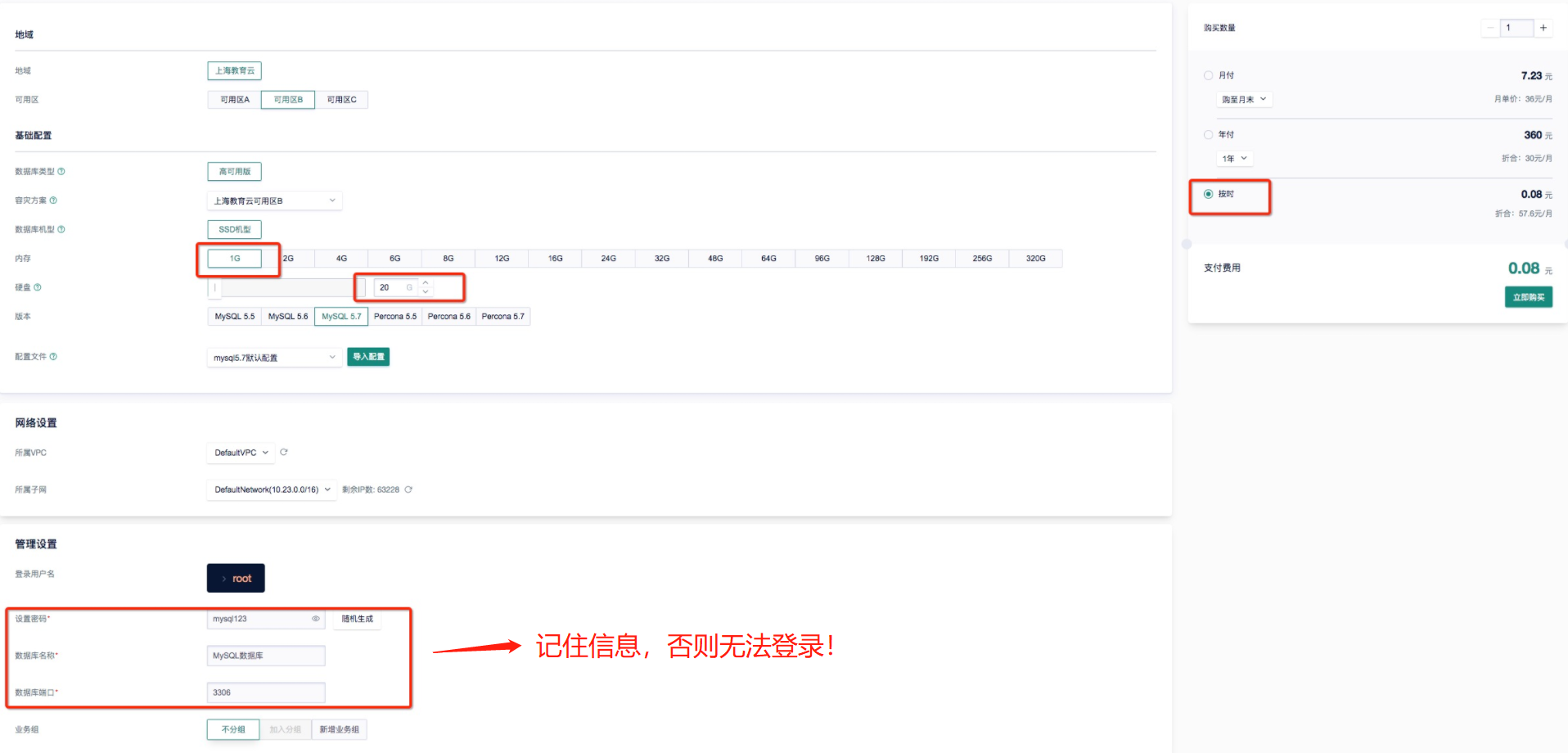 ******注意,实验结束请立即删除云主机和数据库,节省费用******