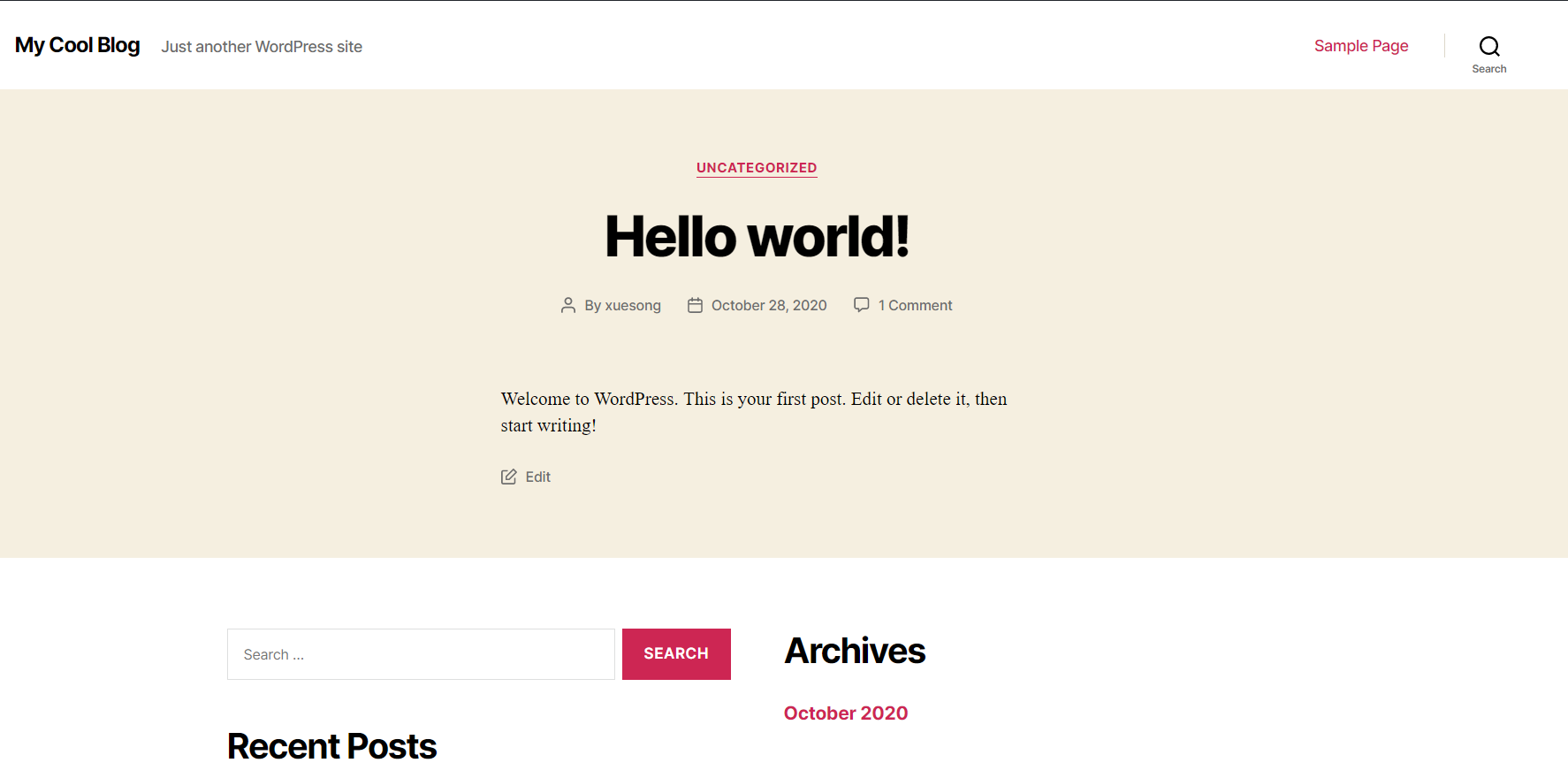 登录后进入dashboard,可以对你的博客网站进行定制。点击左上角你设定的网站名,可以进入博客主页(哇。。。界面属实有点拉垮)。