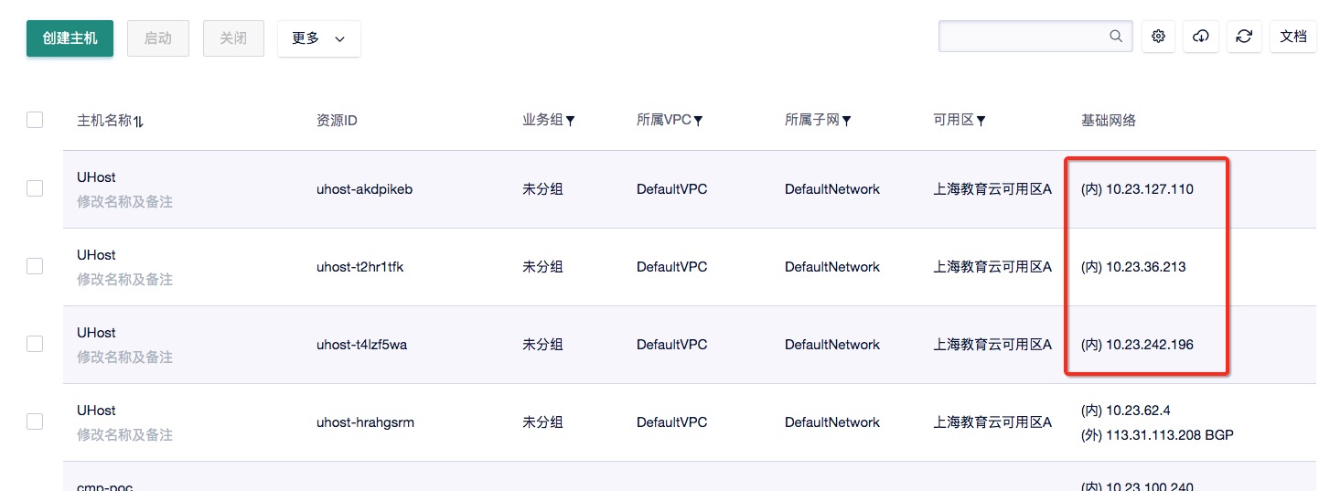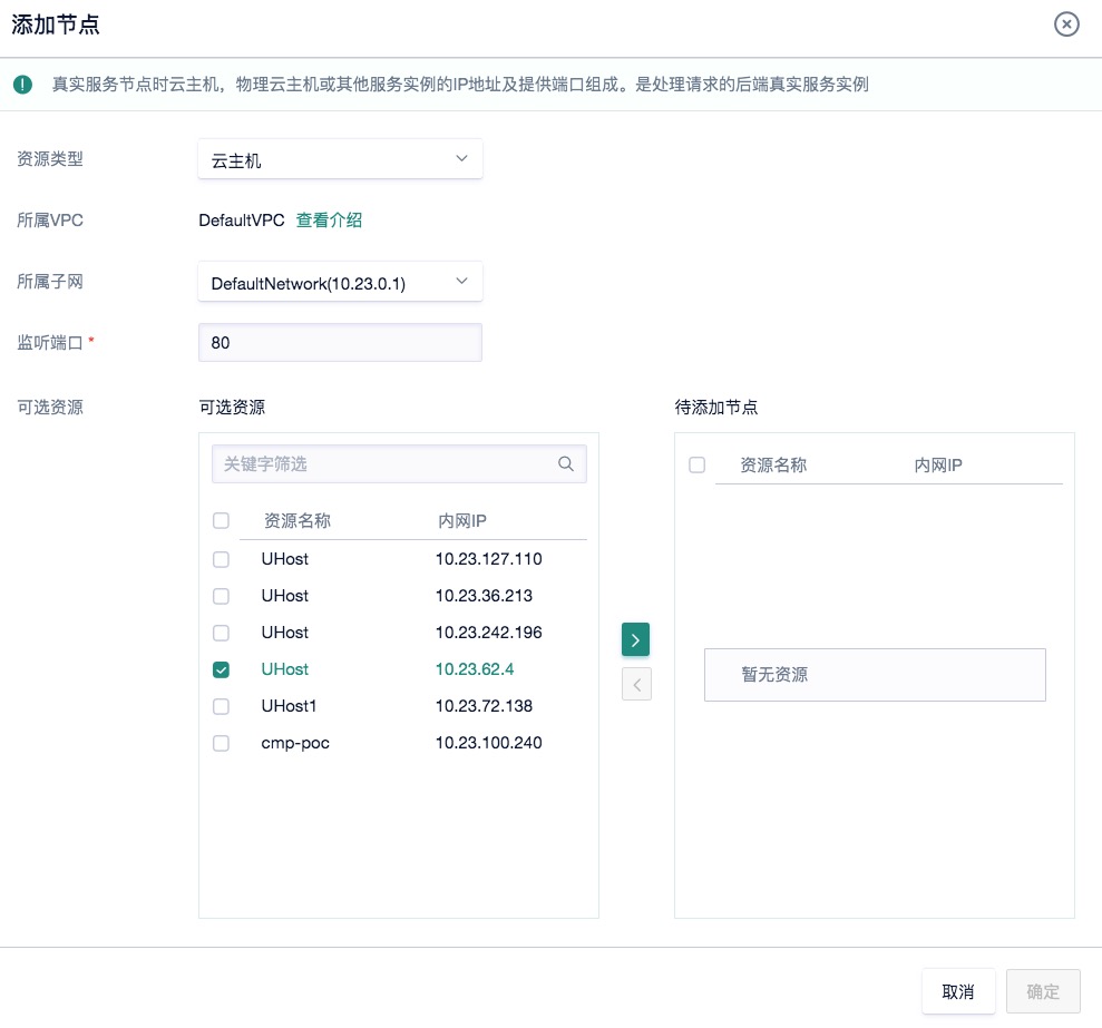 云主机UHost、负载均衡ULB、私有网络VPC、基础网络UNet